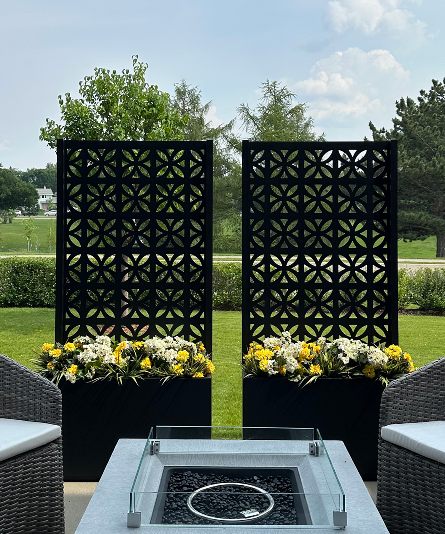 Our outdoor products are manufactured using aluminum and finished with a durable powder coat to ensure they will NEVER rust and keep your privacy products pristine season after season, year after year.